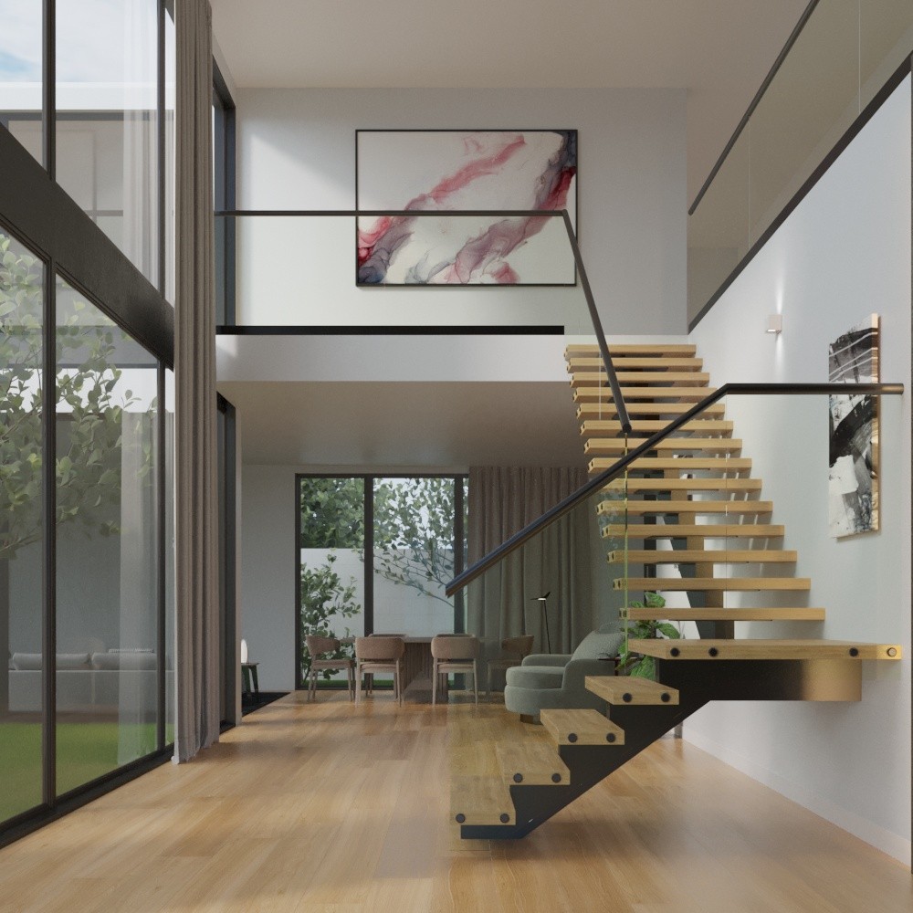 Создаём индивидуальную концепцию лестницы с учётом архитектуры дома. Подготавливаем детализированную 3D-визуализацию, чтобы вы заранее увидели результат.